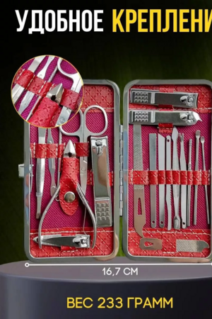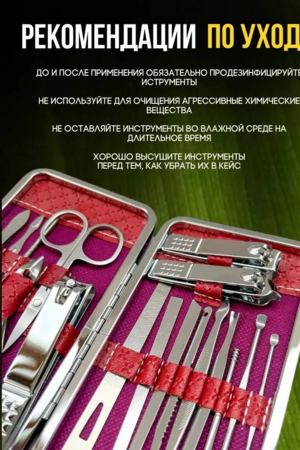 Подарочный маникюрный набор - идеальный подарок для всех любителей красоты и ухода за ногтями. Набор включает в себя все необходимые инструменты для профессионального маникюра и педикюра, а также дизайна ногтей. В состав набора входят: профессиональные ножницы и пилка для снятия длинных ногтей, кутикулы и органайзер для удобного хранения инструментов. Также в наборе имеются специальные палочки для чистки ушей и инструменты для придания ногтям оригинальной формы. Набор представлен в различных цветах: красный, черный, голубой, серый, бежевый. Для удобства хранения и транспортировки набор поставляется в специальном чехле или контейнере. Это делает его идеальным для путешествий или использования дома.