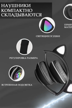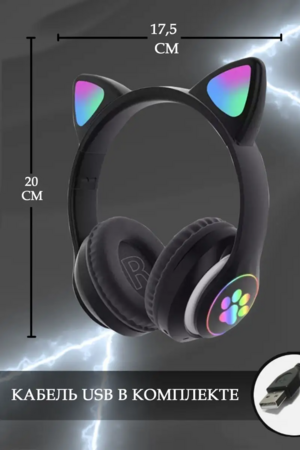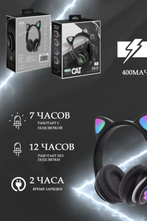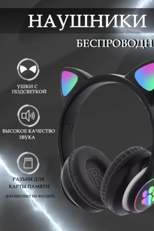 Стильный дизайн со светящимися ушками и лапками кошки Могут работать по Bluetooth или автономно. Беспроводные наушники Cat Ear P33M имеют качественное стереозвучание, встроенный аккумулятор. Большие и мягкие амбушюры гарантируют отличное звучание Вашей любимой музыке даже в очень шумном помещении. Интересный и яркий дизайн! Отличительной чертой наушников является светодиодная подсветка декоративных ушек и самих наушников. Это вызовет восторг друзей и не оставят Вас без внимания окружающих.