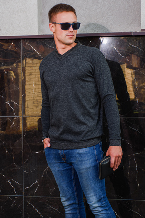 Джемпер для повседневой носки, прямого силуэта, V -образный воротник. Отделка воротника, манжетов, пояса тканью кашкорсе