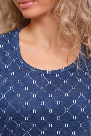 Туника женская прямого кроя с цельнокройным рукавом, чуть приталенного силуэта, обработка рукава манжетом. Низ подгибка, горловина окантовка. Ткань кулирка пенье.