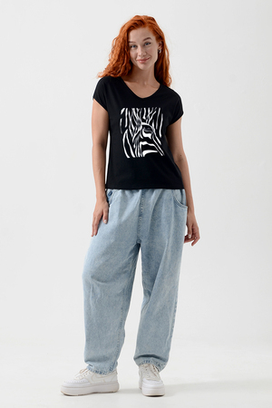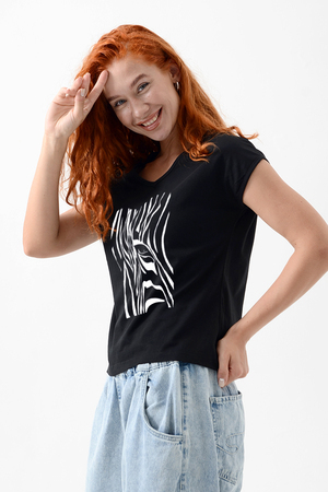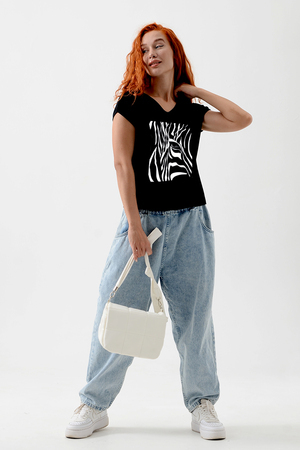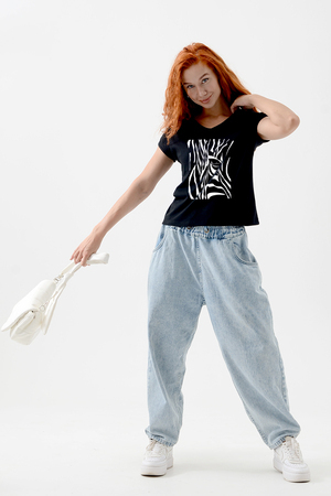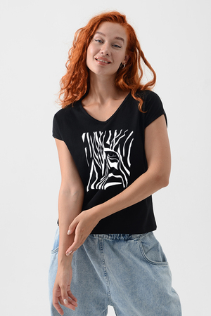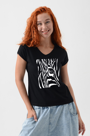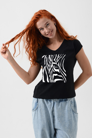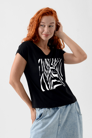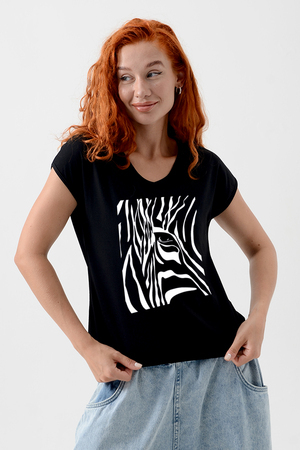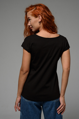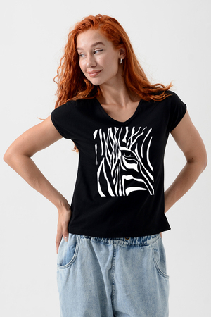 Футболка полуприлегающего силуэта, средней длины, с V-образной горловиной. Рукав цельнокроеный, короткий. Горловина и пройма обработаны бейкой из основного полотна. допустимо различие в цвете от представленного на фото.