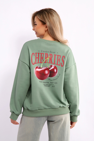 Молодёжный свитшот с ярким принтом на спинке, изготовлен из качественного футера пенье без начёса. Толстовка в свободном стиле OVERSAIZE, спущенная пройма, длинный рукав. Круглая горловина, манжеты рукава и низ джемпера обработаны эластичным кашкорсе. Стильный, приятный к телу джемпер необходимая вещь в гардеробе современной, активной модницы. Длина рукава в таблице измерений указана от начала горловины.