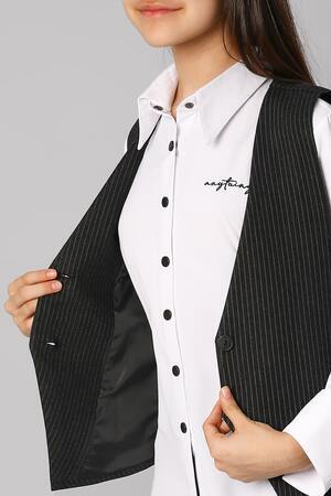 Классический, однобортный жилет для девочки Соль&Перец. Жилет с подкладом, выполнен из износостойкой трикотажной ткани которая долго сохраняет форму и привлекательный внешний вид. Жилет прекрасно сочетается с юбками и брюками. Подойдет для посещения школы, официального или праздничного мероприятия.