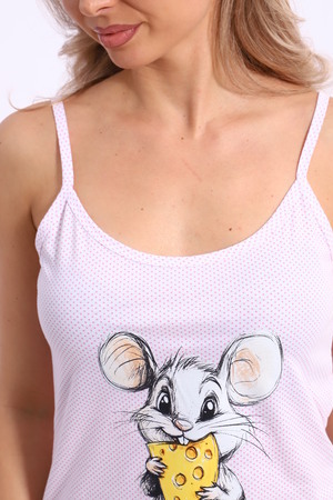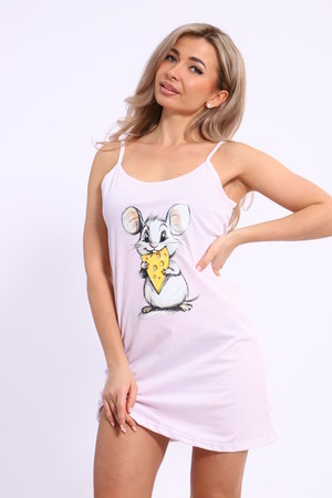 Красивая женская ночная сорочка из хлопка с печатью на лямках в двух цветах, горох розовый и горох голубой.