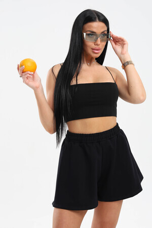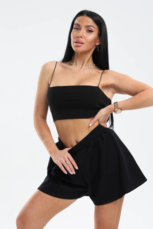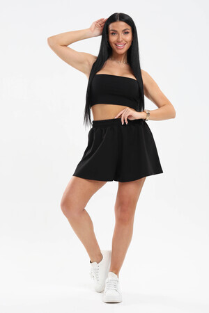 Легкая и приятная к телу ткань обеспечивает отличную воздухопроницаемость, что особенно важно в жаркие дни. Шорты-юбка имеют идеальную посадку по фигуре, не сковывая движений.