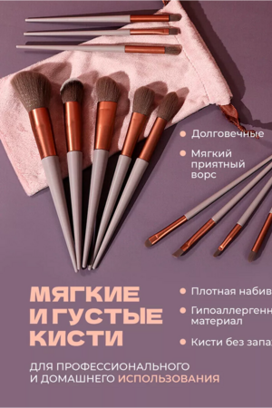 Набор кистей для макияжа ваш незаменимый помощник в создании визажа! Каждый элемент этого набора продуман до мельчайших деталей, чтобы обеспечить вам максимальный комфорт и точность при нанесении грима. Мягкие и широкие, большие и маленькие кисти - мечта любой девушки, которая стремится к изящному образу. Наборчик включает в себя все необходимые кисточки для макияжа лица и глаз. Вы сможете подобрать нужную для румян, век, тонального крема, хайлайтера, тональника, губ, тона для бровей, накладывании базы или теней. Выражайте свою креативность и экспериментируйте с разными оттенками, делая непревзойденный облик! Скошенная форма позволяет легко наносить помаду и контур без оставления неровностей. Ваша основа, стрелки будут выглядеть превосходно с каждым применением. Чувствуйте себя настоящим визажистом и с легкостью играйте с цветами и текстурами.