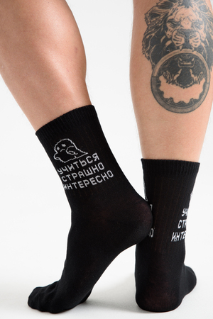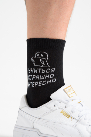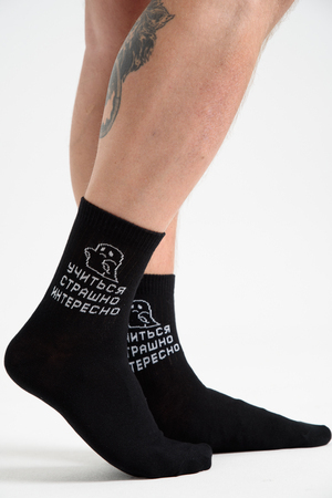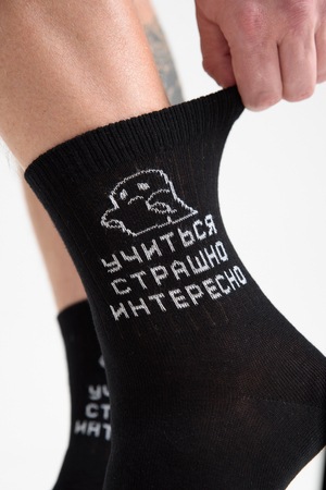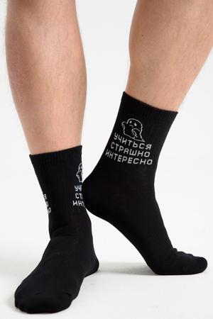 Мужские носки с надписями, связанные из натурального хлопка. Креативная модель мягко облегает ногу, не доставляя дискомфорт в течение всего дня. Носки сочетаются с разной обувью, подходят всем.