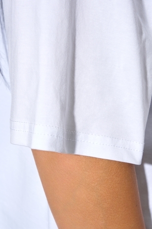 Наша удлиненная футболка с эффектом оверсайз просто создана для этого! Она идеально сидит, не стесняет движений, при этом добавляет изысканности и легкости. С ней вы можете создать абсолютно любой образ: сочетайте её с джинсами, классическими брюками или юбкой, и каждый день будет особенным!