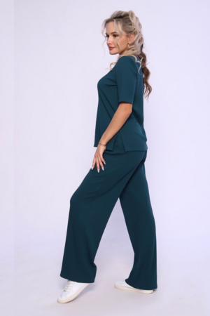 Женский костюм из лапши — это отличный выбор для тех, кто ценит комфорт и стиль в повседневной одежде. Свободный крой футболки обеспечивает свободу движений и расслабленный стиль, а брюки гармонично дополняют образ, придавая ему завершенность.