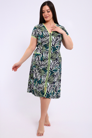 Халат женский на молнии с короткими рукавами, цветной окантовкой, по бокам имеются карманы - это стильный и удобный выбор для комфортного отдыха дома или после душа. Он изготовлен из высококачественного трикотажного материала 100% хлопок, который приятен к телу и обеспечивает мягкость и комфорт в носке. Одной из главных характеристик этого халата является его наличие молнии. Молния предоставляет удобство и легкость при надевании и снятии халата, а также позволяет регулировать степень открытости или закрытости в зависимости от предпочтений и комфорта. Женский халат на молнии доступен в больших размерах, что делает его идеальным выбором для женщин, которые ценят свободу движений и комфорт в одежде. Большие размеры обеспечивают свободу и расслабленность, не сковывая движений и создавая ощущение свободы.