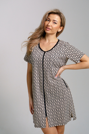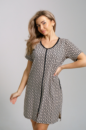 Женский халатик модной расцветки выполнен из 100% хлопчатобумажной ткани, что обеспечивает максимальный комфорт при ношении. Отличается мягкостью и приятной на ощупь текстурой. Материал прекрасно дышит. Носить такой халатик Вы сможете как летом, так и в любой другой сезон. Надёжный замок на молнии сохраняет свои свойства в течении всего времени использования. Женственный вырез и 2 боковых кармана добавляют образу шарм и делают изделие удобным и практичным. А изысканный поясок подчеркнёт вашу талию. Халатик средней длины подойдёт для любого типа фигуры. Отличная модель для дома, для роддома, после родов, для кухонных дел и хозяйственной уборки, для дачи. И конечно идеально после душа, сауны, бани и ванной. А так же будет замечательным подарком на любой праздник: 14 февраля, день рождения, 8 марта. Рекомендуется стирать в деликатном режиме 30 °С. Это поможет избежать деформации и сохранить яркость цвета.