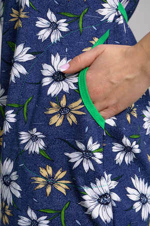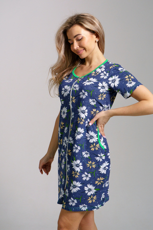 Женский халатик модной расцветки выполнен из 100% хлопчатобумажной ткани, что обеспечивает максимальный комфорт при ношении. Отличается мягкостью и приятной на ощупь текстурой. Материал прекрасно дышит. Носить такой халатик Вы сможете как летом, так и в любой другой сезон. Надёжный замок на молнии сохраняет свои свойства в течении всего времени использования. Женственный вырез и 2 боковых кармана добавляют образу шарм и делают изделие удобным и практичным. А изысканный поясок подчеркнёт вашу талию. Халатик средней длины подойдёт для любого типа фигуры. Отличная модель для дома, для роддома, после родов, для кухонных дел и хозяйственной уборки, для дачи. И конечно идеально после душа, сауны, бани и ванной. А так же будет замечательным подарком на любой праздник: 14 февраля, день рождения, 8 марта. Рекомендуется стирать в деликатном режиме 30 °С. Это поможет избежать деформации и сохранить яркость цвета.