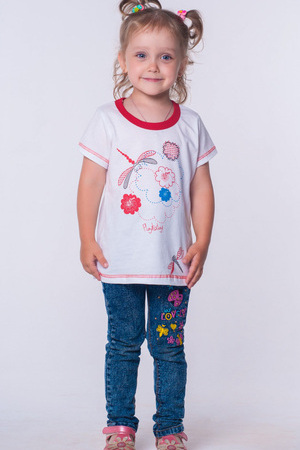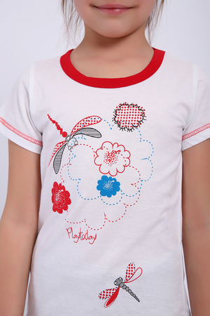 Футболка для девочки. Натуральны хлопковый трикотаж. Стрекозы на белом фоне.