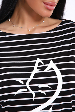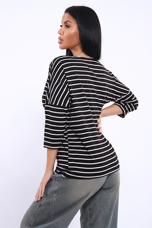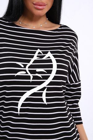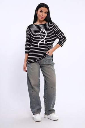Лонгслив женский с оригинальным принтом из мягкой, приятной к телу эластичной вискозы. Джемпер свободного силуэта, горловина в виде "лодочки", спущенная пройма, рукав 3/4. Всегда актуальная полоска и свободный крой футболки с рукавом станет отличным приобретением, идеальным дополнением к вашему гардеробу. Длина рукава в таблице измерений указана от начала горловины.