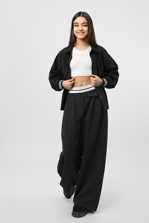 Брюки для девочки Соль&Перец. Модель имеет расширяющийся от бедра силуэт, что визуально вытягивает фигуру. Брюки застёгиваются на потайную молнию, сзади в пояс вшита резинка. Брюки прекрасно сочетаются с любым верхом, и подойдут для любого мероприятия, подчеркнут индивидуальный стиль девочки, и разнообразят её школьный образ.