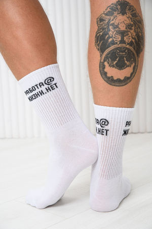 Комплект мужских носков 2 пары. Широкая резинка. По верхней части носка надпись "Работ@ жизни.нет"