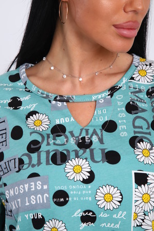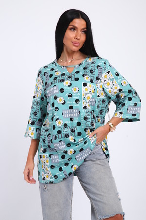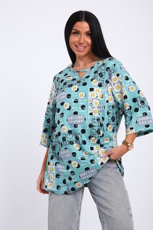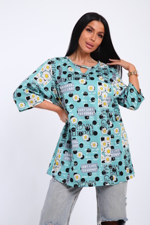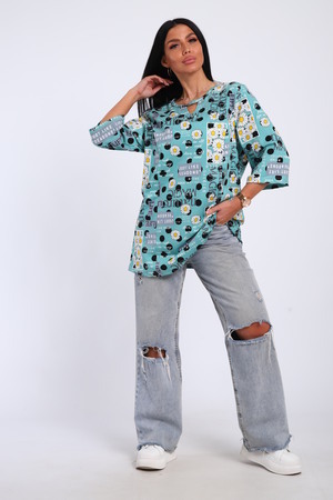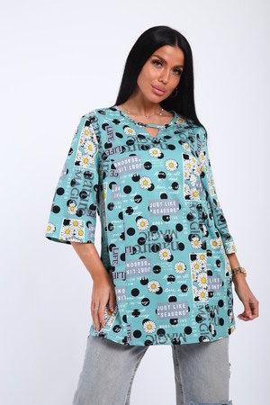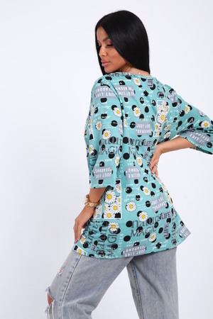 Туника женская с рукавом 3/4. Данная модель выполнена из трикотажного полотна кулирка (хлопок 100%). Горловина обработана обтачкой. Отличная модель для отдыха и прогулок.
