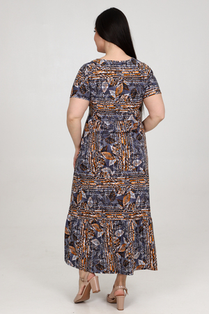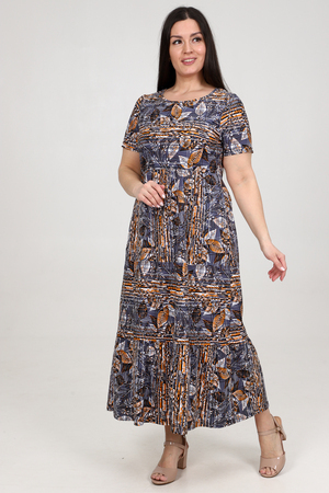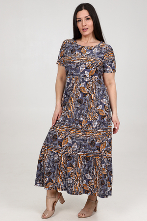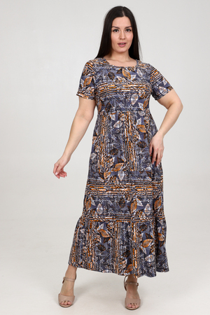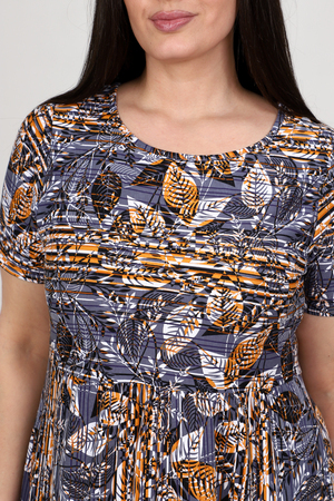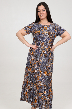 Платье женское из кулирки. Платье свободного покроя состоит из полочки и юбки на сборке. Рукав втачной короткий. Горловина окантована.