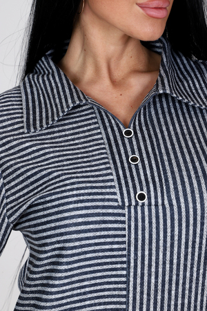 Передняя полочка туники – это игра линий и текстур. Вертикальная полоса визуально вытягивает силуэт, делая фигуру стройнее, а горизонтальная добавляет образу динамичности и оригинальности.