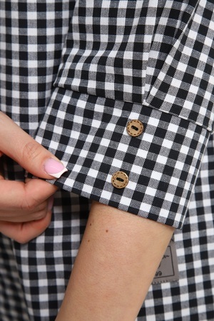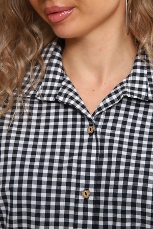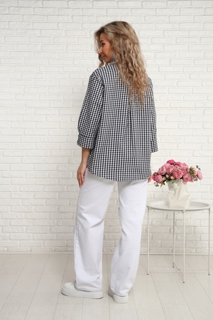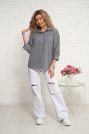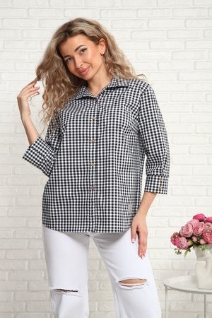 Рубашка женская свободного кроя в эко стиле (100% хлопок, с натуральными кокосовыми пуговицами). Комфортный рукав 3/4 с широким манжетом. Центральная встречная складка на спинке. Воротник со свободной посадкой, без фиксации на пуговицу. Хлопок - 100%, ткань - шотландка (по фактуре похожа на полулён, даёт незначительную усадку, утюжится легко). Стиль, комфорт, отлично сочетается с денимом и классикой. Оптимальный выбор для лета и на все сезоны.