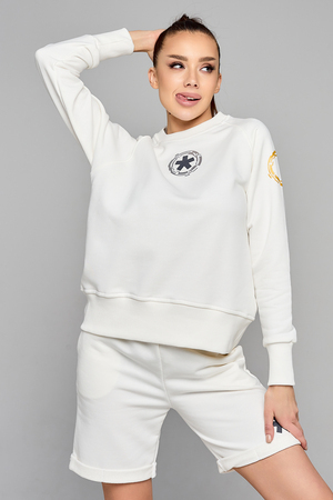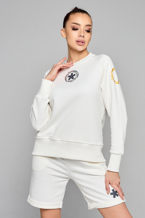 Этот стильный комплект одежды прекрасно подходит для активной и модной женщины. Он сочетает в себе комфорт и функциональность спортивного костюма, а также легкость и свободу летних нарядов. Этот спортивный костюм женский, в котором вы будете чувствовать себя уверенно и стильно в любых условиях. Комплект состоит из шорт и свитшота.