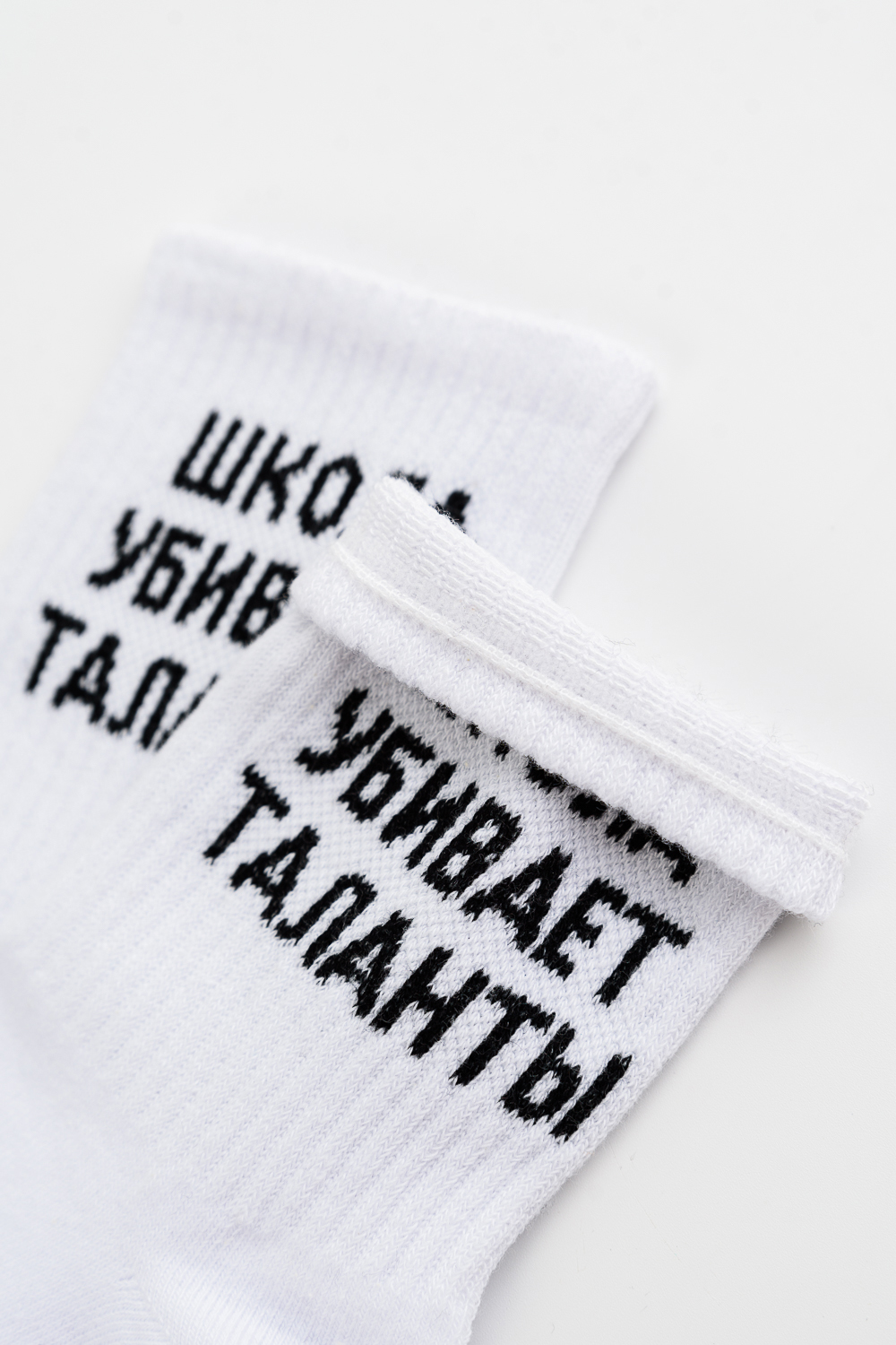 Комплект носков для детей. Широкая резинка, надпись "Школа убивает таланты" В комплекте 2 пары.