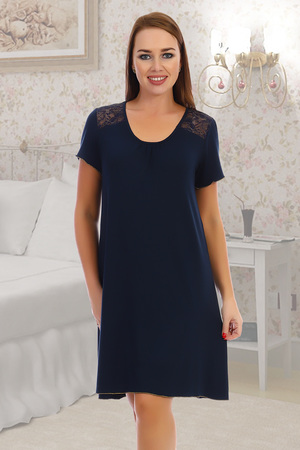 Сорочка женская из вискозы свободного кроя с небольшим рукавом, со сборкой на груди и плече, декорированная гипюровыми вставками и золотистой окантовкой по рукавам и подолу