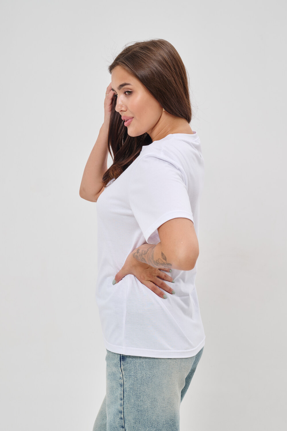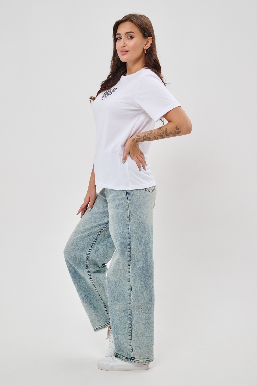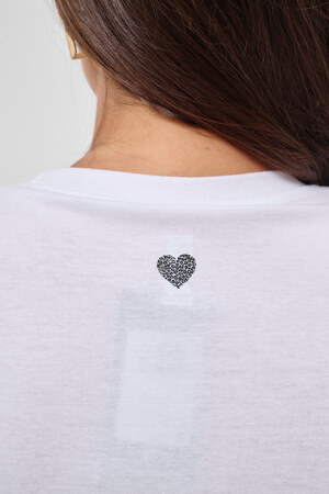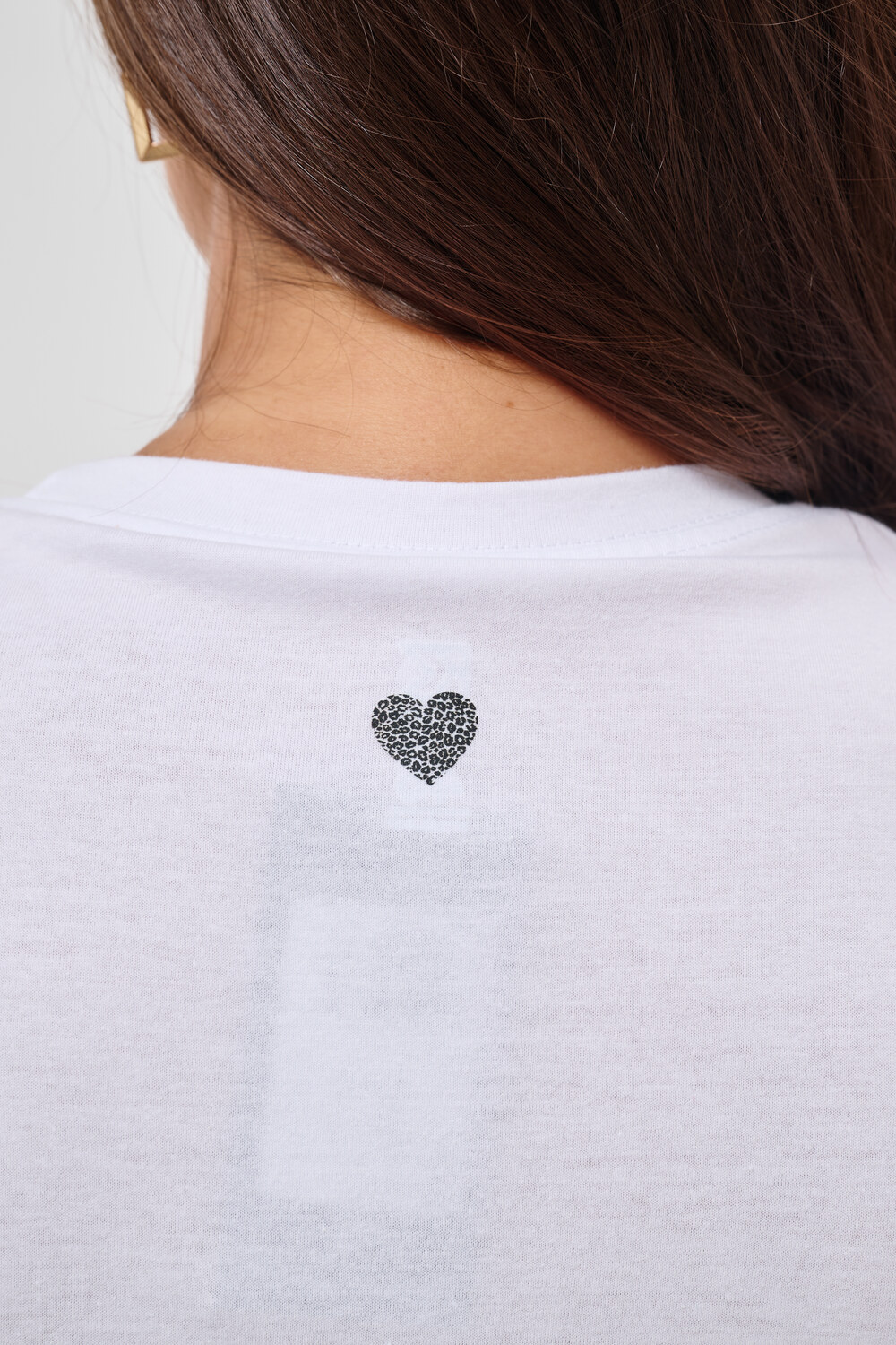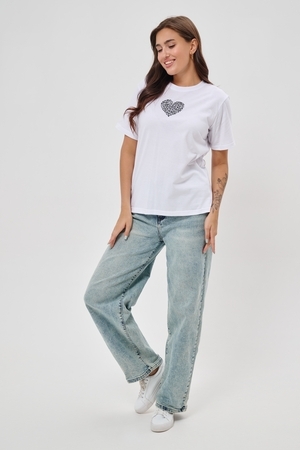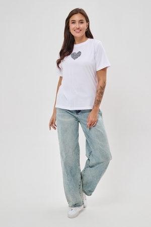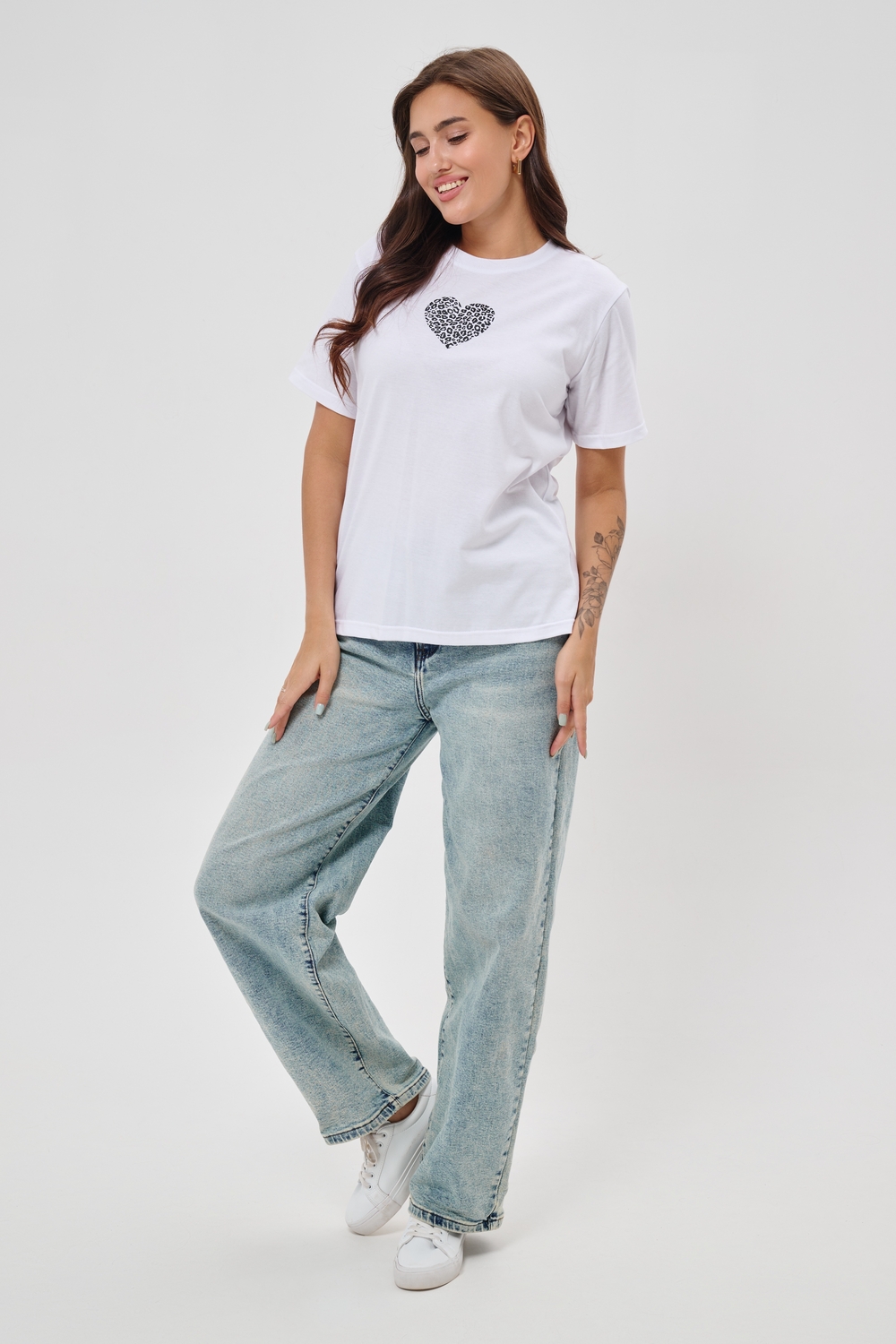 Женская футболка элегантного приталенного кроя с короткими рукавами и классическим круглым вырезом горловины. Минималистичный дизайн дополнен нежным принтом в форме сердца с леопардовым узором, создающими тонкий акцент на образ. Материал приятен к телу, обеспечивает комфорт и свободу движений. Идеально подойдет для повседневного стиля, подчеркивая женственность и утонченность облика обладательницы.