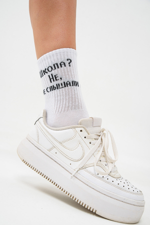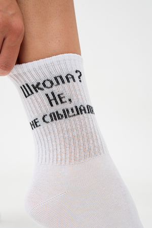 Комплект носков для девушек и женщин. Широкая резинка, надпись "Школа, не, не слышали" В комплекте 3 пары.