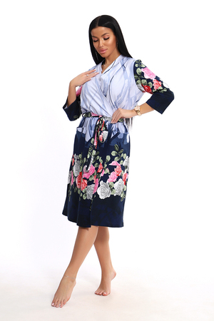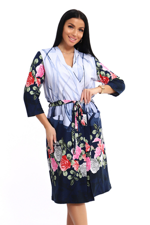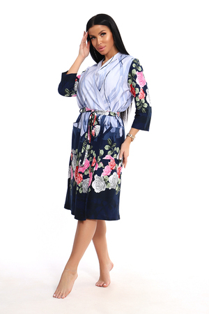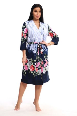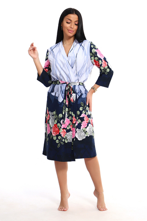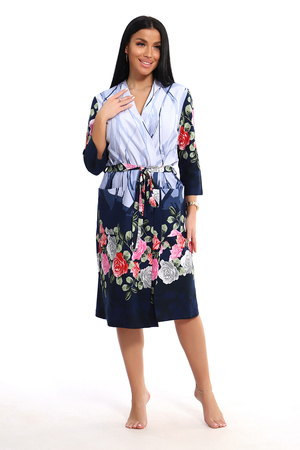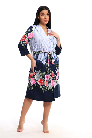 Уютный трикотажный халат с запахом - идеальное дополнение к вашему домашнему гардеробу! Он изготовлен из мягкого хлопка и подойдет женщинам с любой фигурой. Халат — универсальная вещь, которая отлично подходит для отдыха, утреннего кофе или вечернего релакса. Яркая расцветка с цветочными мотивами сделает вас неотразимой .Благодаря элегантному крою и практичному поясу, вы сможете регулировать размер и подчеркивать свою фигуру. Рукава сделаны так, чтобы не мешать вам при выполнении повседневных дел. В халате приятно не только окунуться в мир спокойствия и домашнего уюта, но и встретить гостей. Желаем вам всегда быть нарядной и обворожительной!