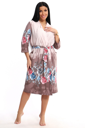 Уютный трикотажный халат с запахом - идеальное дополнение к вашему домашнему гардеробу! Он изготовлен из мягкого хлопка и подойдет женщинам с любой фигурой. Халат — универсальная вещь, которая отлично подходит для отдыха, утреннего кофе или вечернего релакса. Яркая расцветка с цветочными мотивами сделает вас неотразимой .Благодаря элегантному крою и практичному поясу, вы сможете регулировать размер и подчеркивать свою фигуру. Рукава сделаны так, чтобы не мешать вам при выполнении повседневных дел. В халате приятно не только окунуться в мир спокойствия и домашнего уюта, но и встретить гостей. Желаем вам всегда быть нарядной и обворожительной!