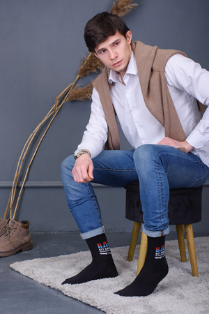 Набор мужских носков с оригинальным рисунком. В упаковке 3 пары. Прекрасный сувенир на 23 февраля.