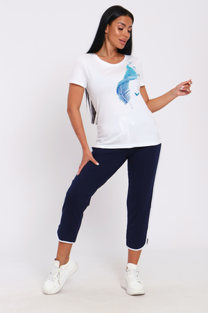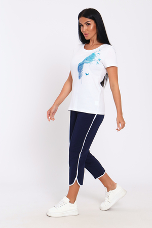 Костюм женский – это стильный и идеальный предмет гардероба ,идеально подходящий для дома и отдыха на любой период :весенний ,осенний, летний и зимний. Комплект состоит из футболки с красочным принтом и бриджи в контрастном цвете. В составе ткани хлопок , лайкра и полиэстер. Хлопковый материал очень комфортный и лёгкий в носке . Бриджи с удобной посадкой придадут вашему образу стильный и модный вид . Базовый современный костюмчик – популярный повседневный выбор на каждый день: на работу , для прогулок , праздников и на дачу. Универсальный стиль позволит вам создавать разнообразные образы , подходящие для любого события.