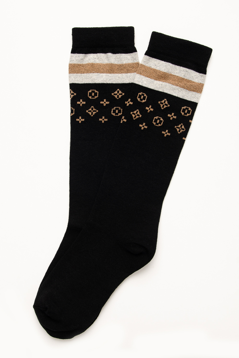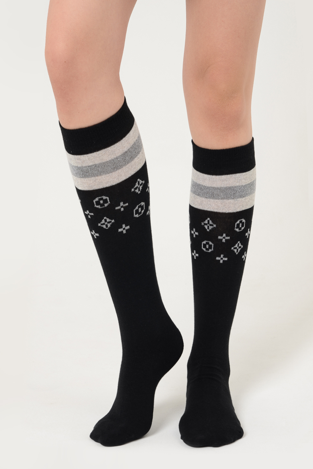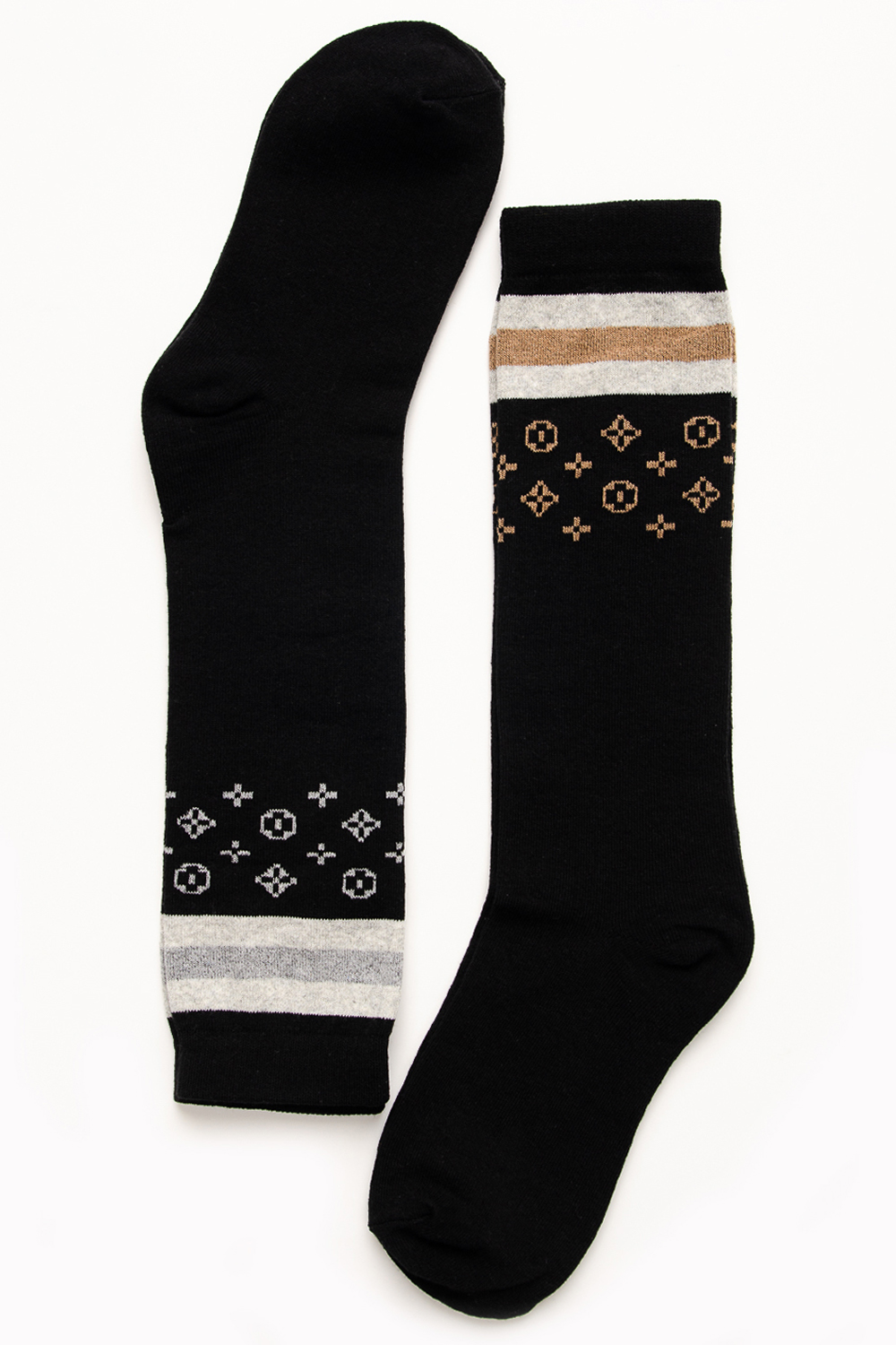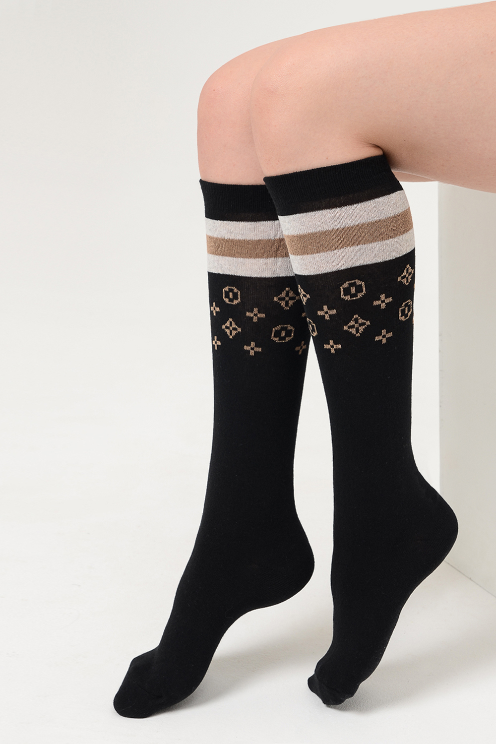 Стильные женские гольфы с лаконичным рисунком. В упаковке 2 пары с рисунками разных расцветок - бежевого и коричневого