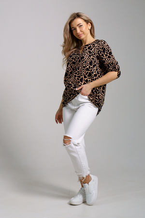 Женская туника свободного силуэта в стиле oversize выполнена из 100% хлопчатобумажного полотна. Этот стиль подходит для любой женщины, ведь он может скрыть все недостатки фигуры и подчеркнуть её достоинства. Округлая горловина с треугольным вырезом, паты на рукавах и по низу изделия делают тунику удобной и привлекательной. Современная туника - это почти неотъемлемая часть гардероба любой женщины. При бережном уходе прослужит вам долгое время. Туника будет любимой домашней одеждой. Тунику летнюю можно взять с собой в роддом, в поездку, или на отдых в санаторий. Блузка такого плана будет отличным подарком для мамы, бабушки, сестры, подруги и любимой девушки. А подарить такой сюрприз можно на любой праздник, день рождения или юбилей, 8 марта, новый год или рождество. Туника удлиненная женская будет хорошо смотреться как на невысоких, так и на высоких. Блузка с вырезом идеальная вещь для похода на работу и дачу, которая сделает Вас неотразимой в любой ситуации.