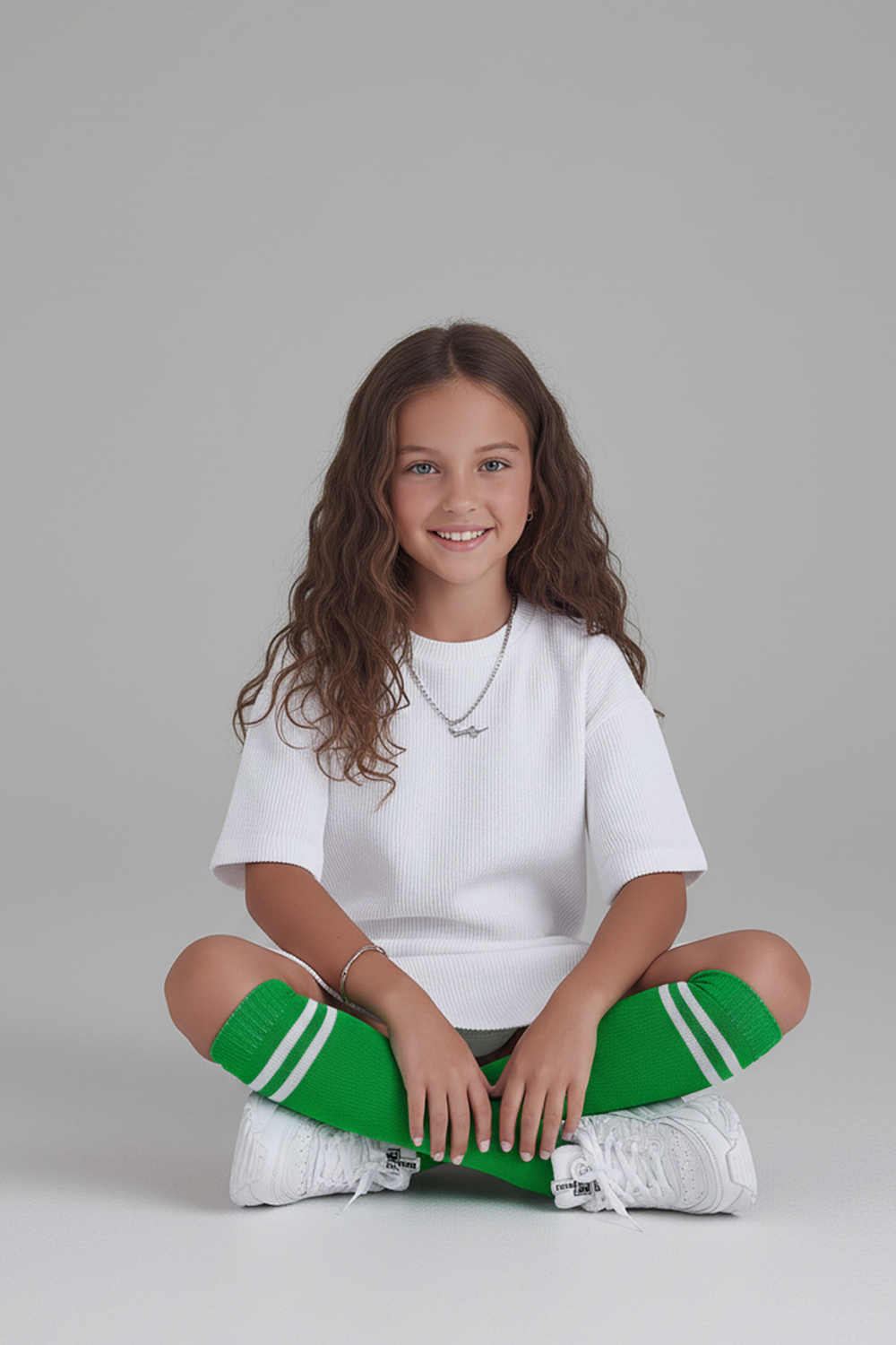 Яркие детские гольфы Колор - точно привлекут внимание окружающих. На манжете полоски разного цвета.