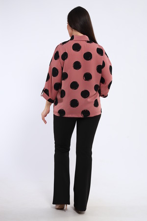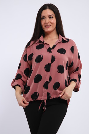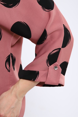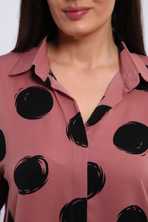 Декоративная планка на полочке служит элегантным акцентом, добавляя изюминку и визуальный интерес к дизайну. Рубашечный воротник придает тунике нотку классики, позволяя создавать разнообразные образы – от повседневных до более формальных.