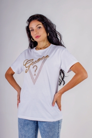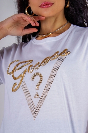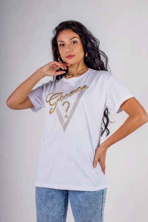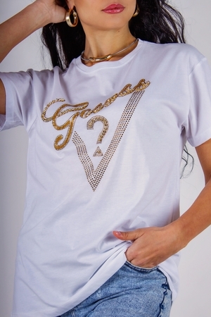 Модель: Футболка "Guess" с треугольником стразы, камешки, бусины