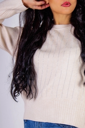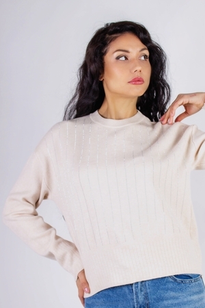 Он идеально сочетается как с классическими брюками, так и с джинсами, что позволяет вам легко составлять различные образы. Украшение стразами в виде полос по всей передней полочке придаёт стильную нотку и делает изделие по-настоящему уникальным. Этот элемент декора притягивает взгляды и выделяет вас из толпы, добавляя вашему образу нотки гламура и женственности.