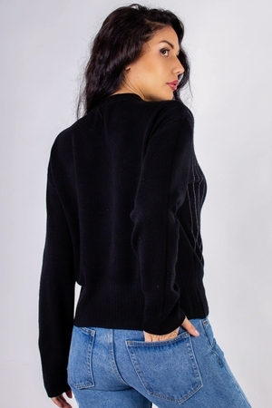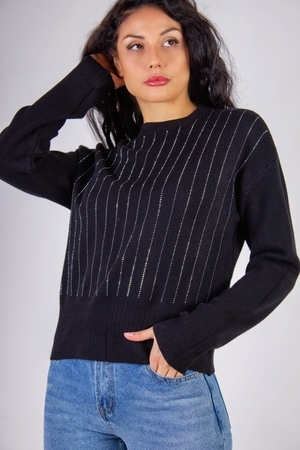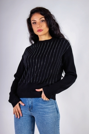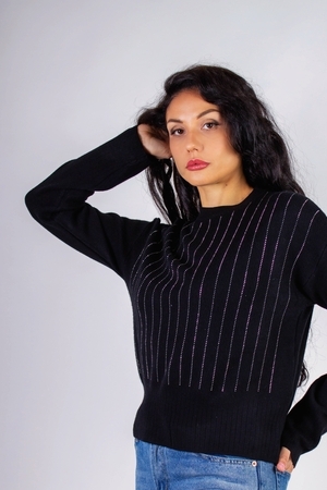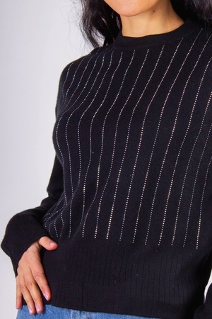 Он идеально сочетается как с классическими брюками, так и с джинсами, что позволяет вам легко составлять различные образы. Украшение стразами в виде полос по всей передней полочке придаёт стильную нотку и делает изделие по-настоящему уникальным. Этот элемент декора притягивает взгляды и выделяет вас из толпы, добавляя вашему образу нотки гламура и женственности.