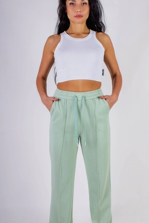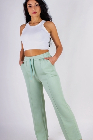 Брюки в разнообразной цветовой палитре: от классического синего и элегантного серого меланжа до кораллового розового, свежего припыленного бирюзового и нежного светло-бежевого. Каждый цвет легко сочетать с различными предметами гардероба, позволяя создавать множество стильных образов.