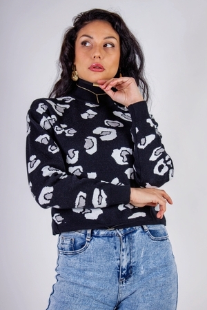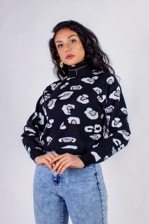 Стильный и модный укороченный джемпер с фиксатором по талии станет незаменимой частью вашего гардероба в любом сезоне. Этот джемпер выполнен в черно-белой гамме с эффектным леопардовым рисунком, который привлекает внимание. Джемпер имеет длинные рукава и округлую горловину, что делает его универсальным и комфортным вариантом для повседневной носки. Он идеально сочетается как с джинсами, так и с юбками, придавая образу стильный и современный вид. Фиксатор по талии позволяет регулировать длину джемпера, создавая эффект тонкой талии и подчеркивая ваши достоинства.