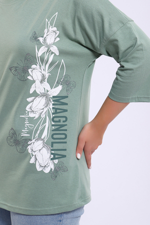 Туника свободного кроя из мягкого, натурального хлопка подарит ощущение комфорта и уюта. Принт маки с использованием глиттера и техники объёмной печати украшает модель, придавая ей изысканный вид. Обработка деталей вкруговую с закрепкой, рукав длиной 3/4, горловина втачная из основной ткани. Большие размеры!