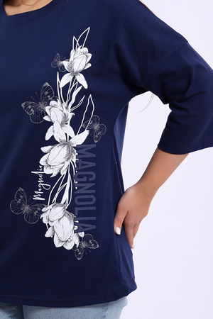 Туника свободного кроя из мягкого, натурального хлопка подарит ощущение комфорта и уюта. Принт маки с использованием глиттера и техники объёмной печати украшает модель, придавая ей изысканный вид. Обработка деталей вкруговую с закрепкой, рукав длиной 3/4, горловина втачная из основной ткани. Большие размеры!
