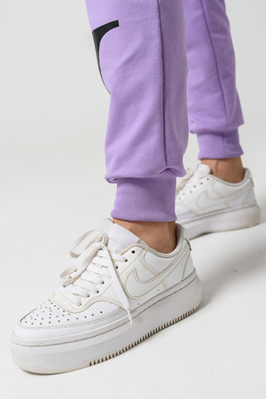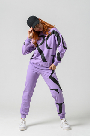 Женские брюки из футера 2-х нитки с лайкрой. По все длине брюк печать. По низу брюк резинка.