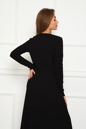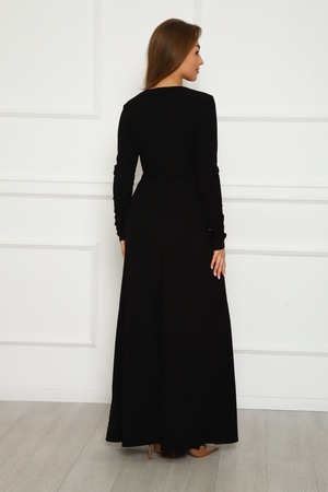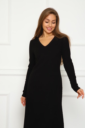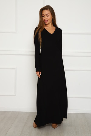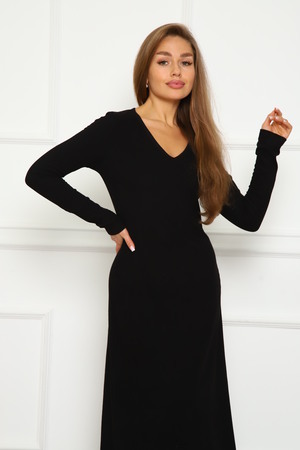 Женское обтягивающее трикотажное платье лапша – это роскошная универсальная модель для стильного и трендового образа. С длиной в пол оно идеально подходит как для повседневного использования в демисезонное время, так и для вечерних мероприятий летом или поход в ресторан на свидание зимним вечером. Стильный приталенный крой обрамляет фигуру. Этот модный наряд отлично сочетается с различными аксессуарами. В основе платья - трикотажный однотонный материал, обеспечивающий качество и комфорт при носке. Приятное к телу теплое полотно позволяет коже дышать, долго сохраняет первоначальный вид и стиль платья. Длинные расклешенные широкие рукава добавляют изысканности обтягивающему платью в рубчик и гармонично завершают композицию. Возможность комбинировать с любой обувью, будь то летние ботинки, зимние туфли или кеды, дает шанс создавать луки для любого сезона, будь то весна или осень. Этот фасон исключительно универсален: он подойдет для офиса, прогулок или праздничных торжественных событий таких как, день рождения, вечеринка, фотосессия, корпоратив, на новогоднее мероприятие или просто выход в клуб. Красивый внешний вид делает его идеальным выбором в праздник для девушек и женщин всех возрастов, подросткам для школьных молодежных торжеств, девушкам на весеннюю прогулку и для деловой встречи, подружкам невест на свадебное мероприятие. Это шикарное коктейльное черное платье можно носить каждый день или сохранить для особых случаев – его привлекательность от этого не изменится.