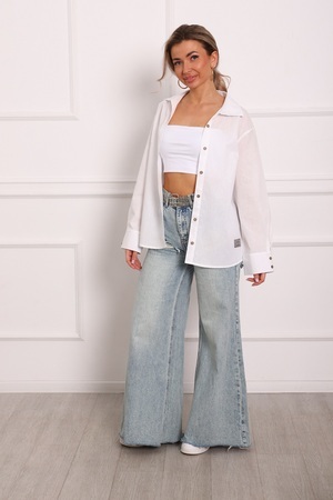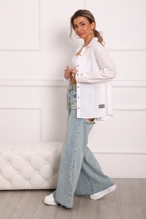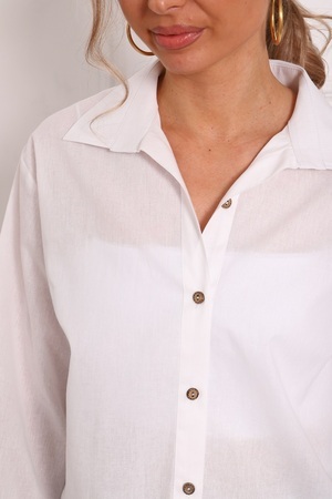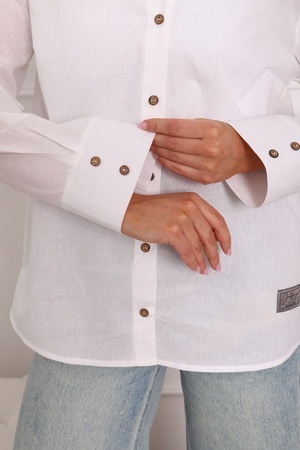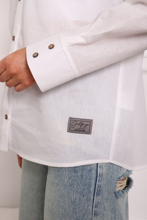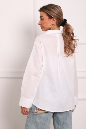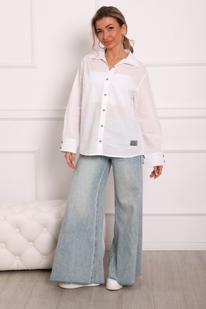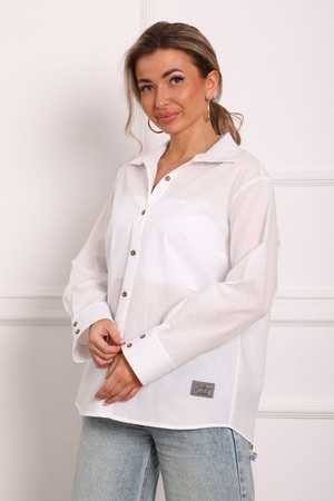 Рубашка женская свободного кроя в эко-стиле (100% хлопок, с натуральными кокосовыми пуговицами). Комфортный длинный рукав с широким манжетом. Центральная встречная складка на спинке. Воротник со свободной посадкой, без фиксации на пуговицу. Ткань "дышащая", хлопок - 100% (по фактуре тонкая, даёт незначительную усадку, стирать рекомендуется в режиме "лёгкая глажка", "без складок" и т.п.). Рубашки белого цвета умеренной просвечиваемости, у цветных рубашек просвечиваемость ниже. Стиль, комфорт, отлично сочетается с денимом и классикой. Оптимальный выбор для лета и на все сезоны.
