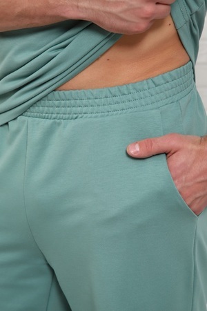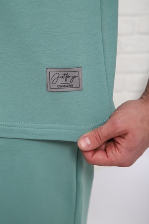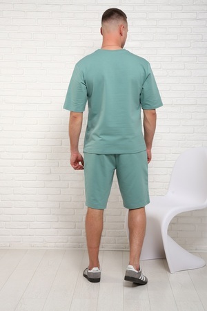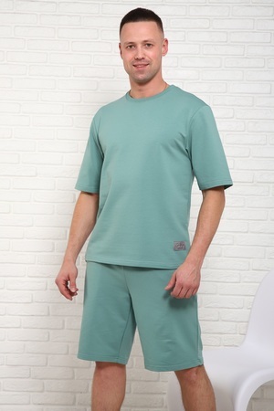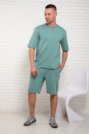Костюм мужской состоит; футболки с короткими рукавами прямого кроя и шорты с боковыми карманами