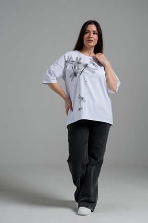 Покупатель на Ozon28.08.2025 в 09:05Прекрасная футболка, но большмерит на свой 56, заказала 48, всё замечательно, качество отмнноое, советую