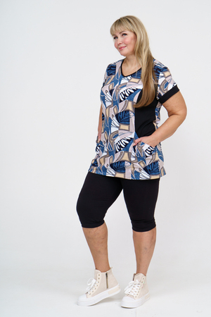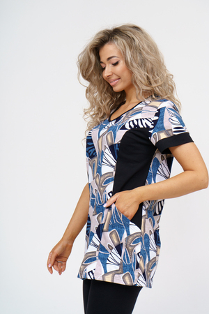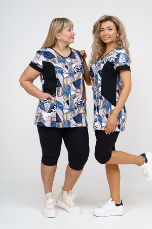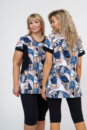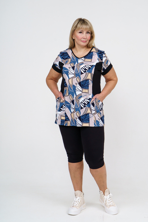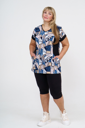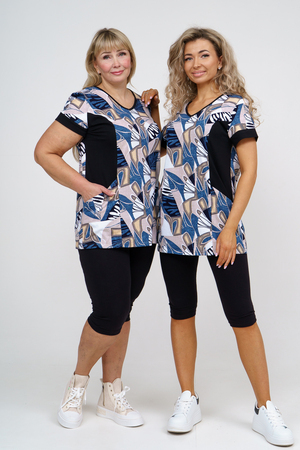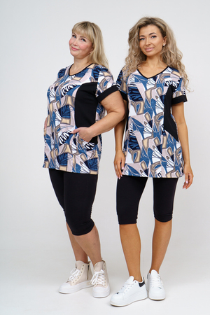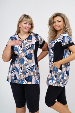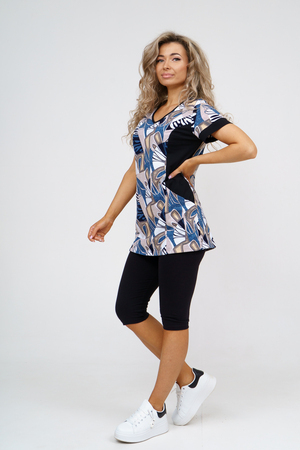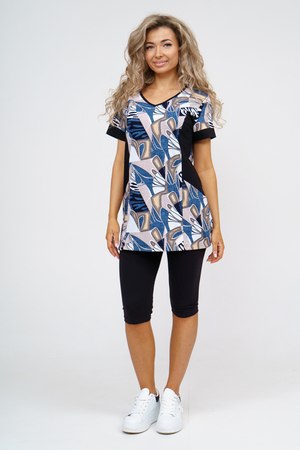 Женский костюм полуприлегающего силуэта состоит из туники и бриджей. 100% дышащий хлопок туники и эластичная вискоза бриджей несут в себе удобство при носке, гигроскопичность и износостойкость. V-образный вырез горловины придаёт изделию женственный вид. Для удобства туника имеет вместительные накладные карманы и втачные рукава с манжетами. Рельефы на полочке изделия создают идеальную посадку и безупречный внешний вид. Бриджи на резинке с высокой посадкой. В костюме такого плана Вы будете чувствовать себя комфортно как дома, так и на любимой даче. Эта двойка идеально подойдет для летнего отдыха на даче, на море или просто для девушек, которые хотят чувствовать себя уютно и комфортно дома. Летний женский костюм подходит для поездок и путешествий, загородного отдыха на природе, а также для получения лечения в больнице или санатории. Повседневное хлопковое изделие с бриджами - отличная идея для подарка любимой жене, маме, сестре или подруге на день рождения, 8 Марта или по любому другому приятному поводу. Рекомендация: для того чтобы продлить яркую жизнь Вашему костюму для дома и отдыха из хлопка, стирку производить при температуре не выше 30 градусов, а во избежание деформации изделия не прибегать к ручному отжиму (не перекручивать), утюжить слегка недосушенное изделие утюгом на паровом режиме. Покупайте наши красивые и удобные домашние костюмы с бриджами и носите с удовольствием! Приятных покупок!